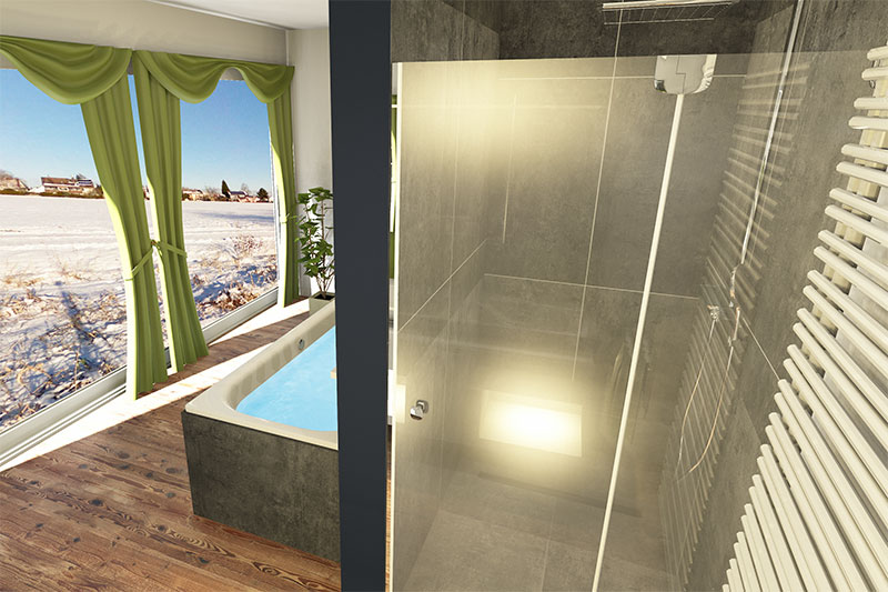 - VIGOUR individual 5.0 Pendeltür mit vogue Scharnierdesign für Nische, ESG klar, PflegePLUS chrom inkl. Aufmaß und Montage